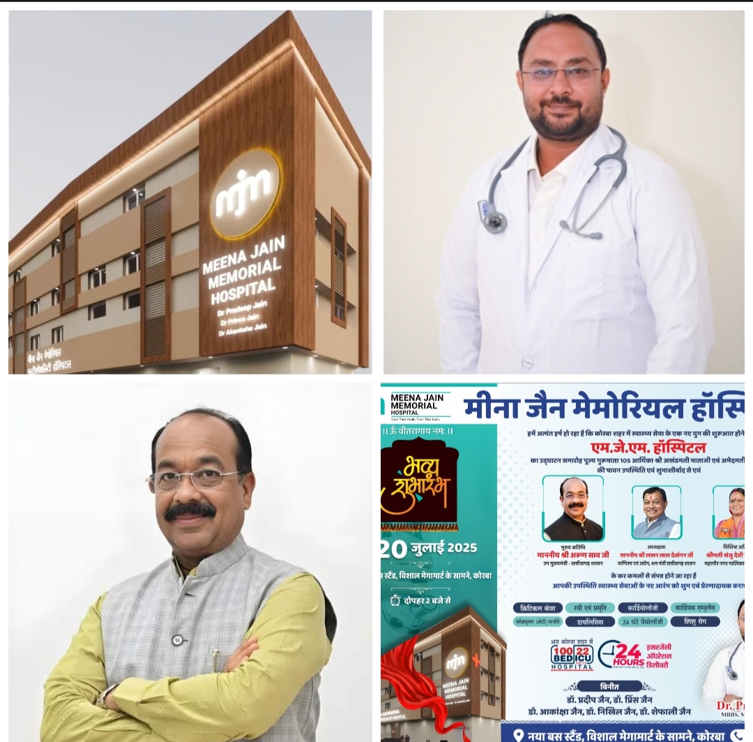 डॉ. प्रिंस जैन ने बताया कि मीना जैन मेमोरियल (MJM) हॉस्पिटल से स्वास्थ्य सेवाओं में ऐतिहासिक क्रांति आएगी। वर्षों से इंतजार था एक ऐसे अस्पताल का जो इलाज में गुणवत्ता भी दे और खर्च में राहत भी। अब यह इंतजार खत्म हो रहा है, क्योंकि मीना जैन मेमोरियल हॉस्पिटल (MJM) का शुभारंभ कोरबा में हो रहा है। एक ऐसा मल्टी-स्पेशियलिटी हॉस्पिटल, जो न सिर्फ अत्याधुनिक सुविधाओं से लैस है, बल्कि कोरबा का सबसे भरोसेमंद और किफायती अस्पताल भी साबित होने जा रहा है।
