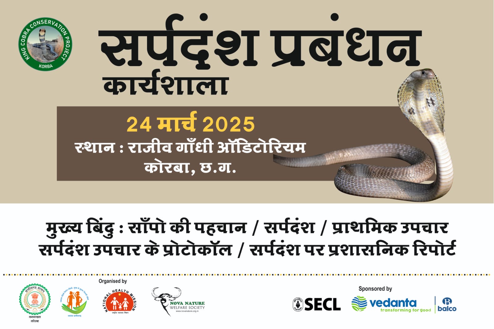 इसी दिशा में पहली बार छत्तीसगढ़ में कोरबा जिले में कई जिलों के डॉक्टर और पीएचसी स्टॉफ, विद्यार्थी, वन विभाग, स्वास्थ्य विभाग, राजस्व विभाग, अशासकीय संस्थाएं आदि एक मंच पर सर्प दंश प्रबंधन कार्यशाला में उपस्थित होंगे।