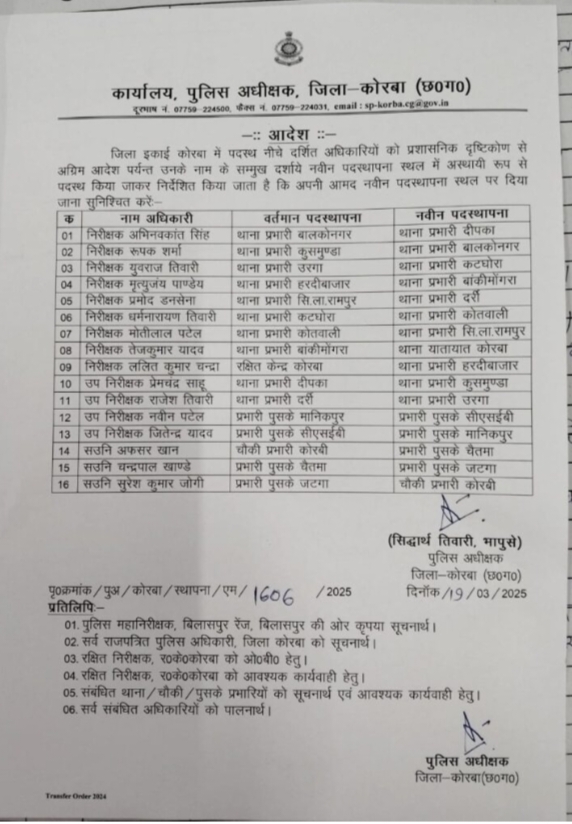 Home ब्रेकिंग न्यूज़ कोरबा में बड़े पैमाने पर पुलिस विभाग में फेर बदल बदले गए... ब्रेकिंग न्यूज़ कोरबा में बड़े पैमाने पर पुलिस विभाग में फेर बदल बदले गए सभी थाना प्रभारी By Kamlesh Tiwari - March 19, 2025 14 0 FacebookTwitterPinterestWhatsApp कोरबा में बड़े पैमाने पर पुलिस विभाग में फेर बदल बदले गए सभी थाना प्रभारी