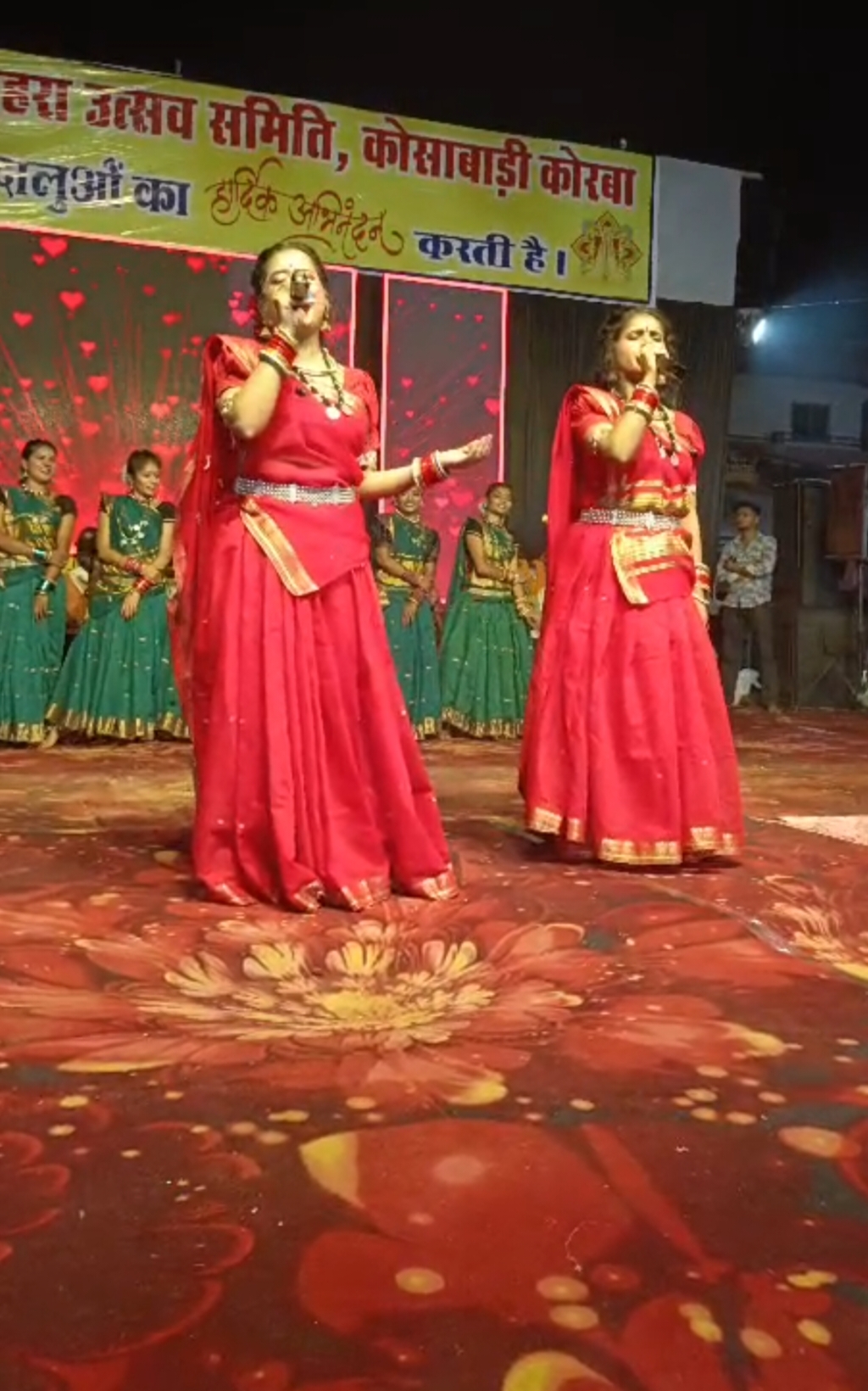 Samachar Chhattisgarh Korba .कोरबा कोसा बाड़ी दुर्गा उत्सव समिति के तत्वावधान में राजेंद्र प्रसाद नगर फेस 1 दशहरा मैदान में आयोजित सांस्कृतिक कार्यक्रम में छत्तीसगढ़ की प्रसिद्ध लोकगायिकाएँ गरिमा दिवाकर और स्वर्णा दिवाकर ने अपनी सुरीली और मधुर आवाज़ों से श्रोताओं को मंत्रमुग्ध कर दिया।