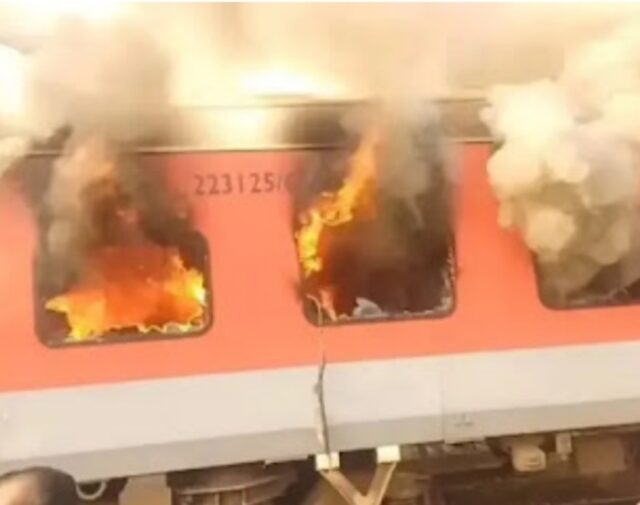 गरीबरथ एक्सप्रेस में भीषण लगी मची अफरातफरी यात्रियों ने कूदकर बचाई जान