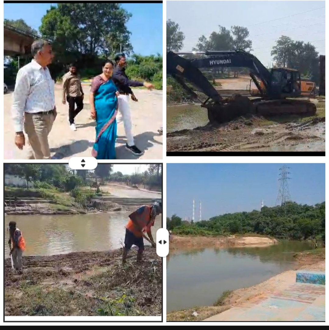 छठ पर्व की तैयारी तेज नगर निगम के द्वारा जेसीबी से डेंगू नाला छठ घाट की साफ सफाई शुरू