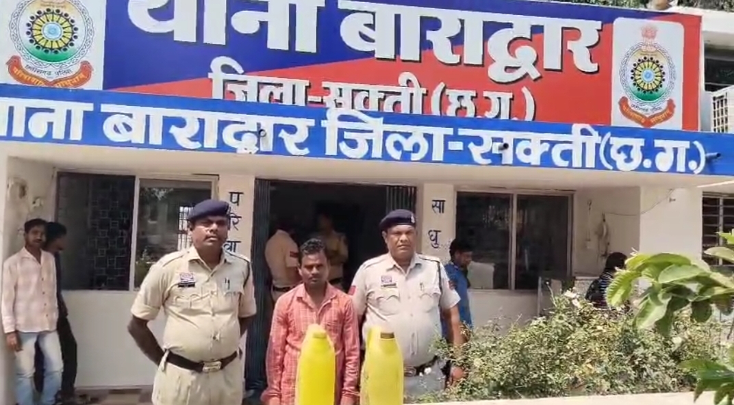 Samachar Chhattisgarh :जिला शक्ति घटना का विवरण – मामले का विवरण इस प्रकार है कि पुलिस अधीक्षक सक्ती सुश्री अंकिता शर्मा महोदया द्वारा क्षेत्र मे अवैध जुआ, गांजा व शराब बिक्री एवं परिवहन करने वाले आपराधियो पर अंकुश लगाने हेतु अधिक से अधिक कार्यवाही करने की निर्देश पर अतिरिक्त पुलिस अधीक्षक महोदय, हरीश यादव जी, अनुविभागीय अधिकारी (पुलिस) मनीष कुंवर सक्ती के मार्गदशन पर थाना प्रभारी निरीक्षक लखन पटेल थाना बाराद्वार मुखबीर की सुचना पर राजाभांठा बेल्हाडीह में टीम बनाकर रेड कार्यवाही कर आरोपी मनोज कुमार रात्रे पिता कांशी राम रात्रे उम्र 45 वर्ष साकिन राजाभांठा बेल्हा्डीह थाना बाराद्वार जिला सक्ती के कब्जे से 10 लीटर हांथ भंटटी से बना कच्ची महुआ शराब कीमती 1000 रूपये को जप्त किया गया जिसे आबकारी एक्ट के प्रावधानो के तहत विधिवत कार्यवाही कर आबकारी अधिनियम का सबुत पाये जाने से आरोेपी को गिरफ्तार कर रिमांड पर मान.न्यायालय पेश किया गया।