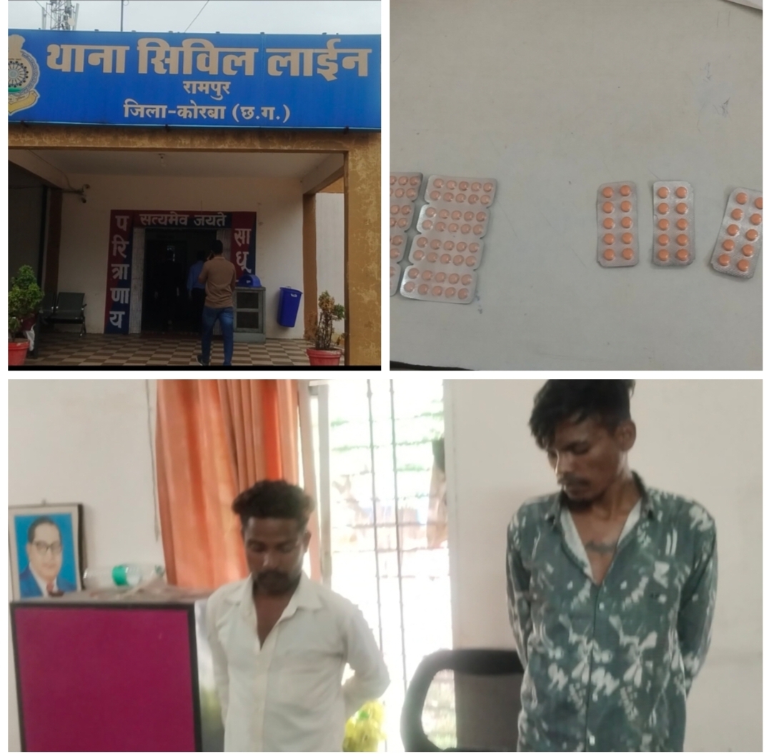 नशे के खिलाफ कोरबा पुलिस की बड़ी कार्रवाई रामपुर सिविल थाना क्षेत्र में दो आरोपी गिरफ्तार 17नग, नशीली दवाइयाँ बरामद