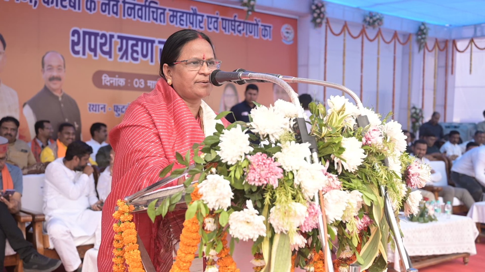 समारोह को सम्बोधित करते हुए सुश्री पाण्डेय ने सभी निर्वाचित जनप्रतिनिधियों को शुभकामनाएं देते हुए जनहित में कार्य करने के लिए प्रेरित किया। उन्होंने कहा कि आज सभी ने संवैधानिक प्रक्रिया का पालन करते हुए शपथ ग्रहण किया है। सभी जनप्रतिनिधि अपने कर्तव्यों का इमानदारी पूर्वक निर्वहन करें। पूर्व राज्य सभा सासंद ने कहा कि आमजनों ने प्रदेश के मुखिया विष्णुदेव साय के कुशल नेतृत्व में हो रहे विकास कार्यो पर भरोसा जताया है। महापौर और उनकी पार्षदों की टीम अच्छा काम करते हुए शहर को साफ स्वच्छ और बेहतर सुविधायुक्त बनाने के लिए निष्ठापूर्वक जनहित में कार्य करेंगे। महापौर राजपूत ने कहा कि शहर की जनता ने उनपर विश्वास किया है, जिसपर पूरी तरह खरा उतरने का कार्य किया जाएगा। उन्होंने कहा कि निगम के महापौर के रूप में उनका हर कार्य जनता के हित मे किया जाएगा।