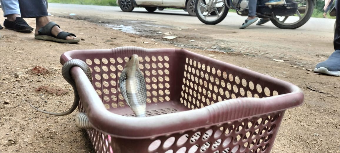 प्लास्टिक बास्केट में फंस गया था नाग, नोवा नेचर की टीम ने किया बड़ी सूझ बूझ से रेस्क्यु।