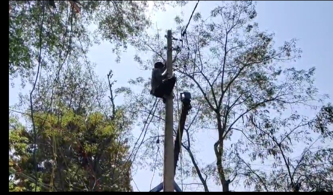 बिजली विभाग के ठेकेदार की लापरवाही 400 के लालच में बिना सुरक्षा उपकरण ओर सेफ्टी बेल्ट के बिना मजदूर को 20 फीट बीजली के खंभे पर चढ़ाया जा रहे हैं