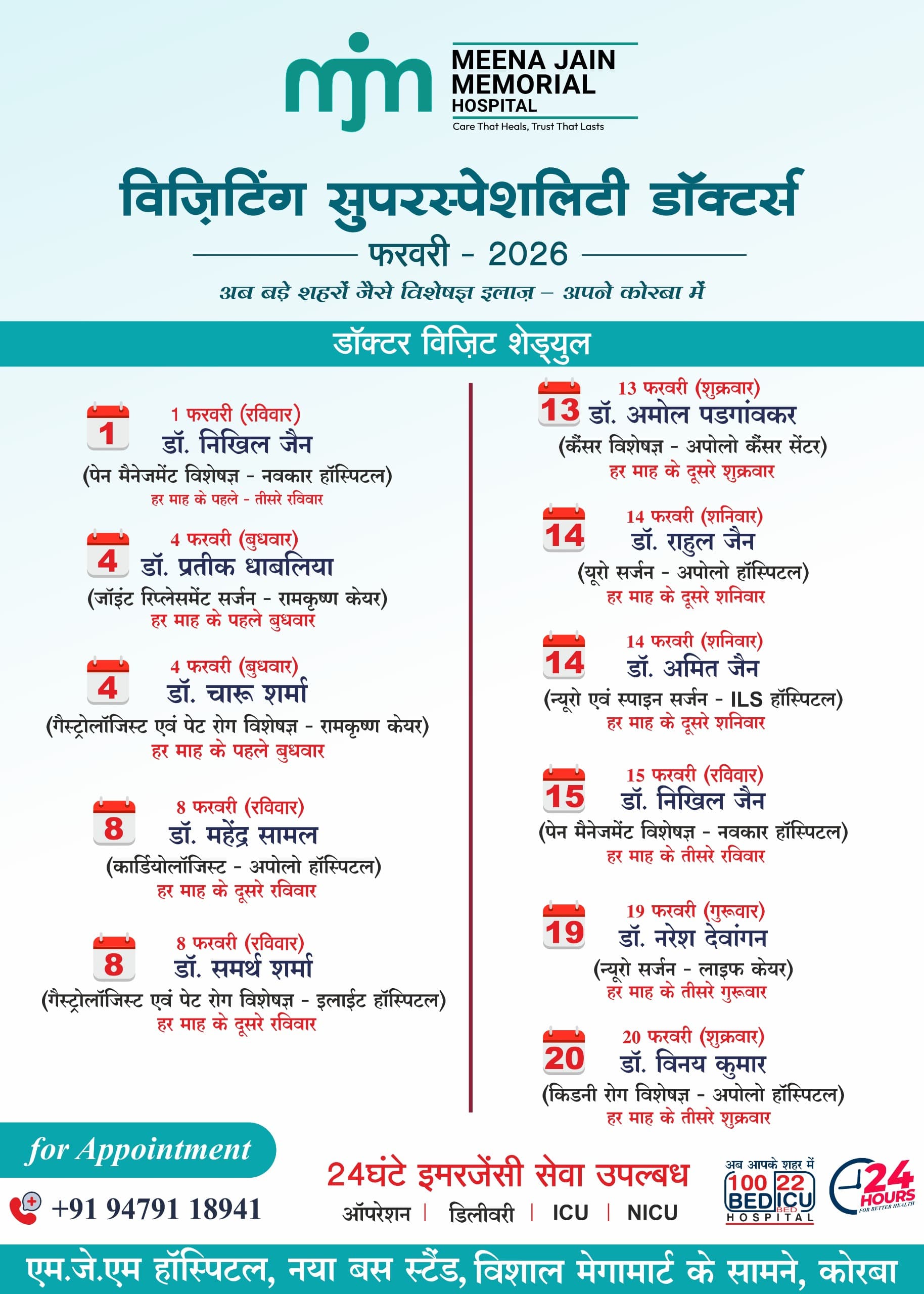 📍 एम.जे.एम मल्टीस्पेशलिटी हॉस्पिटल, कोरबा
