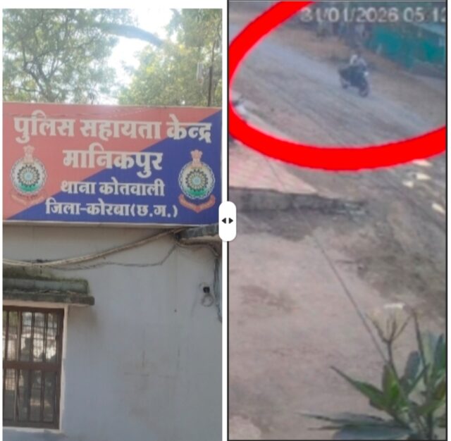Samachar Chhattisgarh Korba. मानिकपुर चौकी क्षेत्र के अंतर्गत बाइक चोरों के हौसले लगातार बुलंद होते नजर आ रहे हैं। ताजा मामला दिनदहाड़े बाइक चोरी का है, जहां अज्ञात चोरों ने बड़ी बेखौफी के साथ एक बाइक पर हाथ साफ कर दिया। पूरी घटना आसपास लगे सीसीटीवी कैमरे में कैद हो गई है।