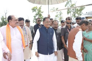 मुख्यमंत्री विष्णु देव साय का कोरबा पुलिस लाइन हेलीपेड पर जनप्रतिनिधियों ने किया आत्मीय स्वागत