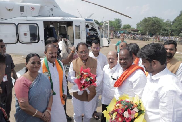 मुख्यमंत्री विष्णु देव साय का कटघोरा मेला ग्राउंड हेलीपेड पर जनप्रतिनिधियों ने किया आत्मीय स्वागत