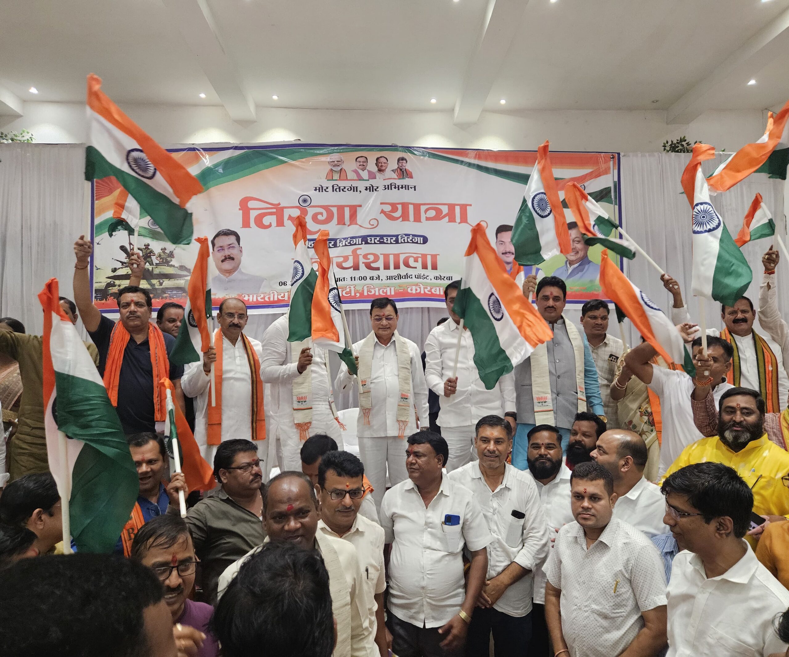 Samachar Chhattisgarh Korba.प्रदेश संगठन के निर्देशानुसार भारतीय जनता पार्टी द्वारा “मोर तिरंगा – मोर अभिमान” 🇮🇳 अभियान के अंतर्गत कोरबा जिले के ट्रांसपोर्ट नगर स्थित आशीर्वाद प्वाइंट में जिला स्तरीय कार्यशाला का आयोजन किया गया। यह कार्यशाला जिला संगठन के प्रभारी  गोपाल साहू के कुशल मार्गदर्शन एवं भाजपा जिला अध्यक्ष  गोपाल मोदी और कार्यक्रम संयोजक पूर्व जिला अध्यक्ष डॉ. राजीव सिंह के नेतृत्व में संपन्न हुई।