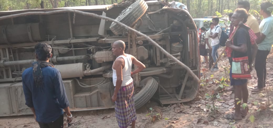 यात्रियों से भरी बस अनंत्रित होकर पलटी दो दर्जन से अधिक लोग हुए घायल