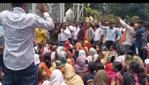श्वेता हॉस्पिटल में प्रसूता की मौत के बाद ग्रामीण ने कलेक्टर कार्यालय के गेट के सामने धरने पर बैठे