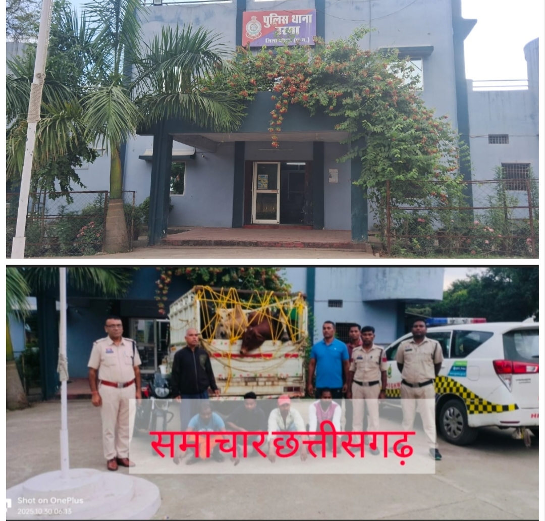सूचना के आधार पर रात करीब 11:45 बजे पुलिस ने ग्राम फरस्वानी के पास घेराबंदी की। चेकिंग के दौरान वाहन में 7 मवेशी लोड पाए गए। मौके पर मौजूद चार व्यक्तियों को गिरफ्तार कर लिया गया, जबकि कुछ तस्कर मौके से फारहर हो गये।सहन बहाल यादव, पिता जगु राम यादव, निवासी मुड़ा टोली, जिला जसपुर, दिनेस राम, पिता बबलू राम निवासी कछुआककनी, जिला जसपुर, खीक राम बघेल पिता स्वर्गीय जनक राम बघेल निवासी जरवे थाना नगरदा जिला शक्ति मंगलु यादव पिता उमेंद्र राम निवासी उच्चभठी जिला जांजगीर पकड़े गए आरोपी अलग-अलग जिले के रहने वाले हैं