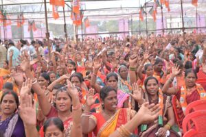 सभा स्थल पर प्रातः 10:00 बजे से ही कार्यकर्ताओं और आमजन मानस की खचाखच भीड़ रही। इसमें महिलाओं की अधिक संख्या थी। कोरबा शहर के सभी 67 वार्डो से लोग शामिल हुए।