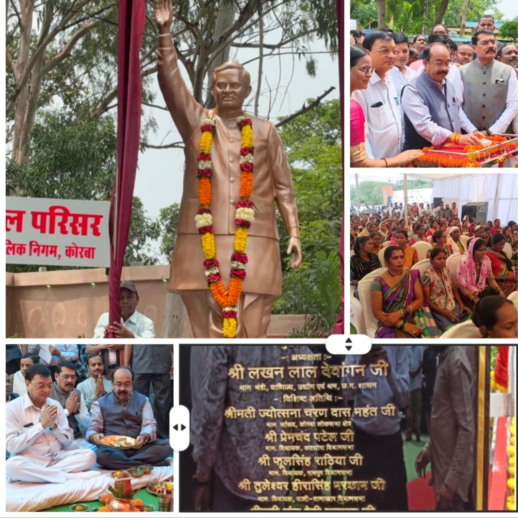 उपमुख्यमंत्री अरुण साव अटल परिसर का किया लोक अर्पण और अटल बिहारी वाजपेई के प्रतिमा का किया अनावरण 30 करोड रुपए के विकास कार्यों का किया लोकार्पण और भूमि पूजन