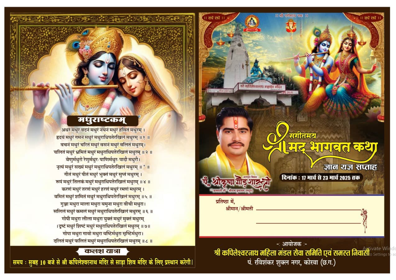 पंडित रविशंकर शुक्ला नगर में कपिलेश्वर महिला मंडल सेवा समिति के द्वारा कथा वाचक वृंदावन मथुरा पंडित कृष्ण गौड़ शास्त्री के मुख से अमृत पान कराया जाएगा