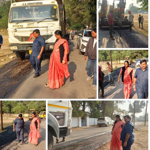 Samchar Chhattisgarh korba.कोरबा 18 नवंबर 2025. नगर पालिका निगम क्षेत्र में चल रहे विकास कार्यों की समीक्षा के तहत कोरबा महापौर  संजू देवी राजपूत ने मंगलवार शाम पंप हाउस कॉलोनी वार्ड क्रमांक 16 में सड़क चौड़ीकरण कार्य का औचक निरीक्षण किया। शाम करीब 4 बजे महापौर अचानक स्थल पर पहुंचीं, जहां सड़क चौड़ीकरण और मरम्मत का काम प्रगति पर था। उन्होंने मौके पर मौजूद अधिकारियों से कार्य की विस्तृत जानकारी ली और निर्माण की गुणवत्ता पर विशेष जोर दिया।