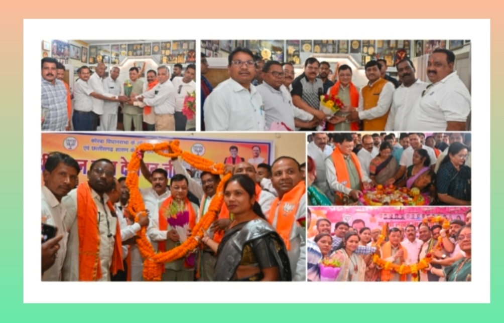 टीपी नगर स्थित भाजपा कार्यालय में मंत्री के स्वागत के लिए कार्यकर्ताओं का हुजूम उमड़ पड़ा इस दौरान पार्टी पदाधिकारियों ने उनका भव्य अभिनंदन किया भाजपा जिला अध्यक्ष गोपाल मोदी ने कहा कि मंत्री देवांगन सरल और सहज व्यक्तित्व के धनी हैं तथा 24 घंटे कार्यकर्ताओं और आम जनता के लिए उपलब्ध रहते हैं इस मौके पर महामाला पहनाकर उनका सम्मान किया गया