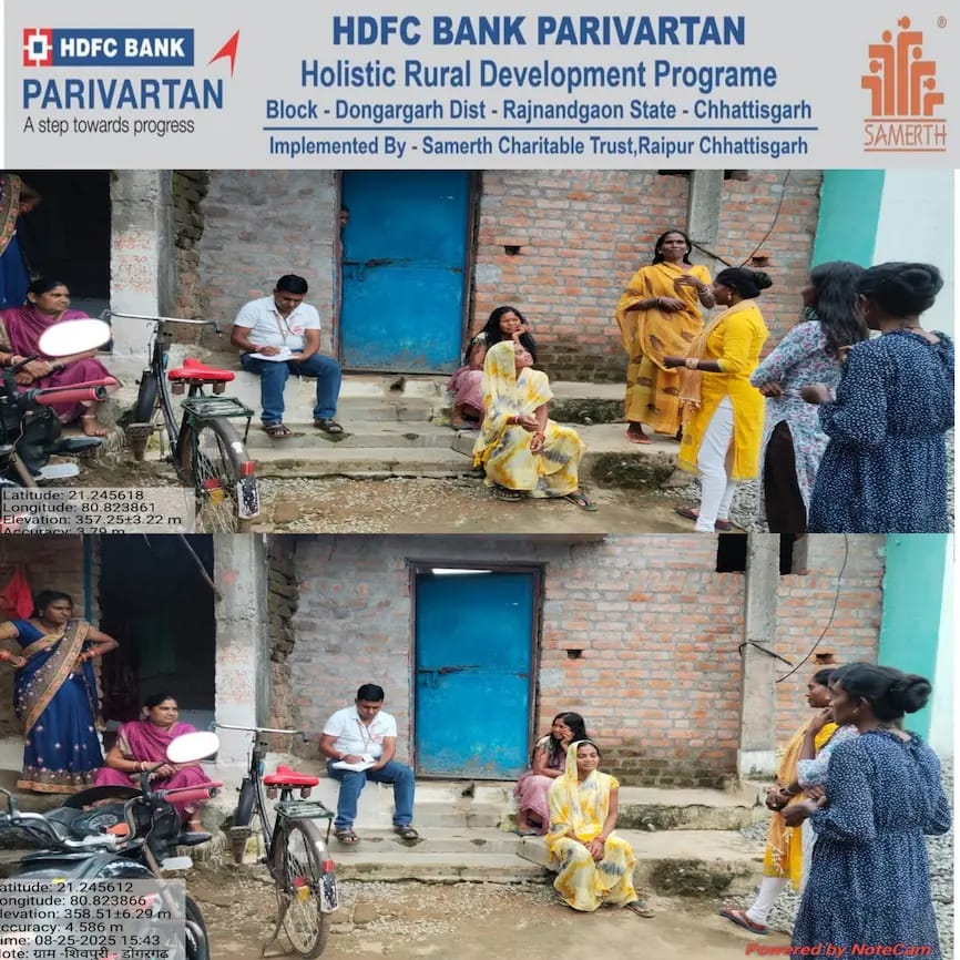 Samachar Chhattisgarh Korba.जिला राजनांदगांव के डोंगरगढ ब्लॉक में — HDFC बैंक के HRDP (होलिस्टिक रूरल डेवेलपमेंट प्रोग्राम) ‘परिवर्तन’ प्रोजेक्ट के सहयोग से समर्थ चैरिटेबल ट्रस्ट द्वारा डोंगरगढ़ ब्लॉक की 15 ग्राम पंचायतों में समग्र ग्रामीण विकास की दिशा में अगले 3 वर्षो के लिए महत्वपूर्ण पहल की जा रही है। इन ग्राम पंचायतों में खुर्सीपार, बिलहारी, साहसपुर, पुरैना, कलकसा, अछोली, बेलगांव, विजनापुर, शिवनीकला, मूरमुदा, भोथली, रीवागहन, देवकट्टा, मनकी और शिवपुरी शामिल हैं।